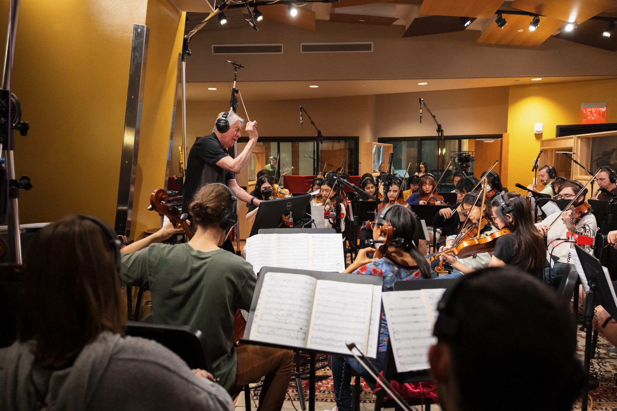 Acclaimed composer Alan Silvestri ’70 leads a film scoring session with Berklee students for the college's annual BMI Day.