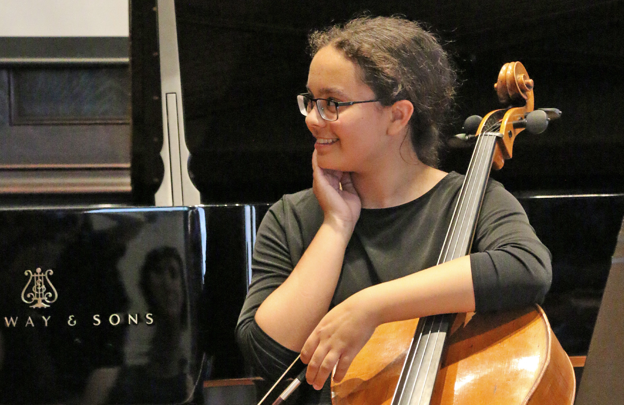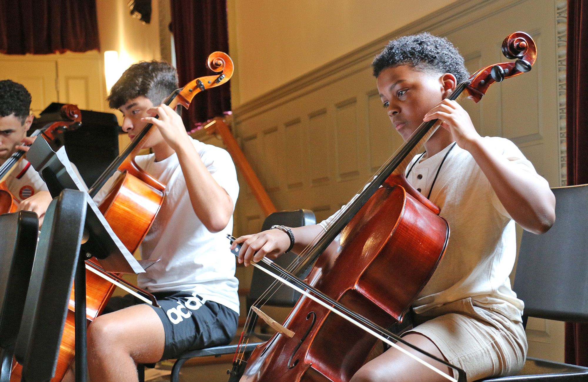 Sphinx Performance Academy cellists rehearse in Seully Hall.