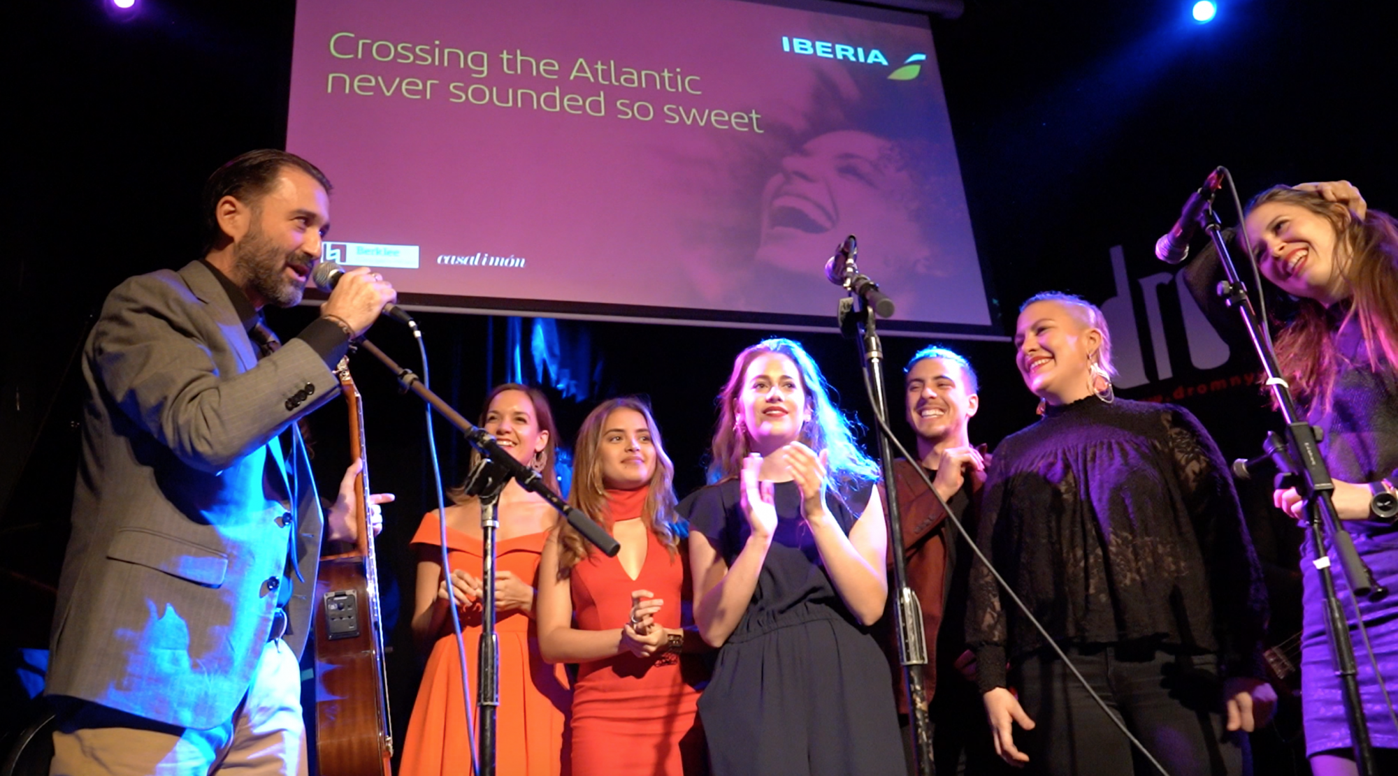 Javier Limón thanks the performers at an event sponsored by the airline Iberia, which supports MMI.