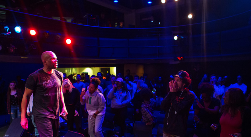 Darryl "D.M.C." McDaniels, a member of the pioneering hip-hop group RUN-D.M.C., recently paid a visit to Berklee, sharing his life story with Berklee students through an engagement sponsored by Berklee's Reach Out Initiative. With RUN-D.M.C., McDaniels has won both Hall of Fame and Lifetime Achievement Grammy awards. The group became the first rappers to do so, and claims many other "firsts," including being the first hip-hop on MTV or to grace the cover of Rolling Stone. McDaniels is also a celebrated comic book publisher, philanthropist, and cofounder of the nonprofit Felix Organization, whose mission is to create "inspiring opportunities and new experiences to enrich the lives of children who are growing up in the foster care system," as McDaniels himself did.