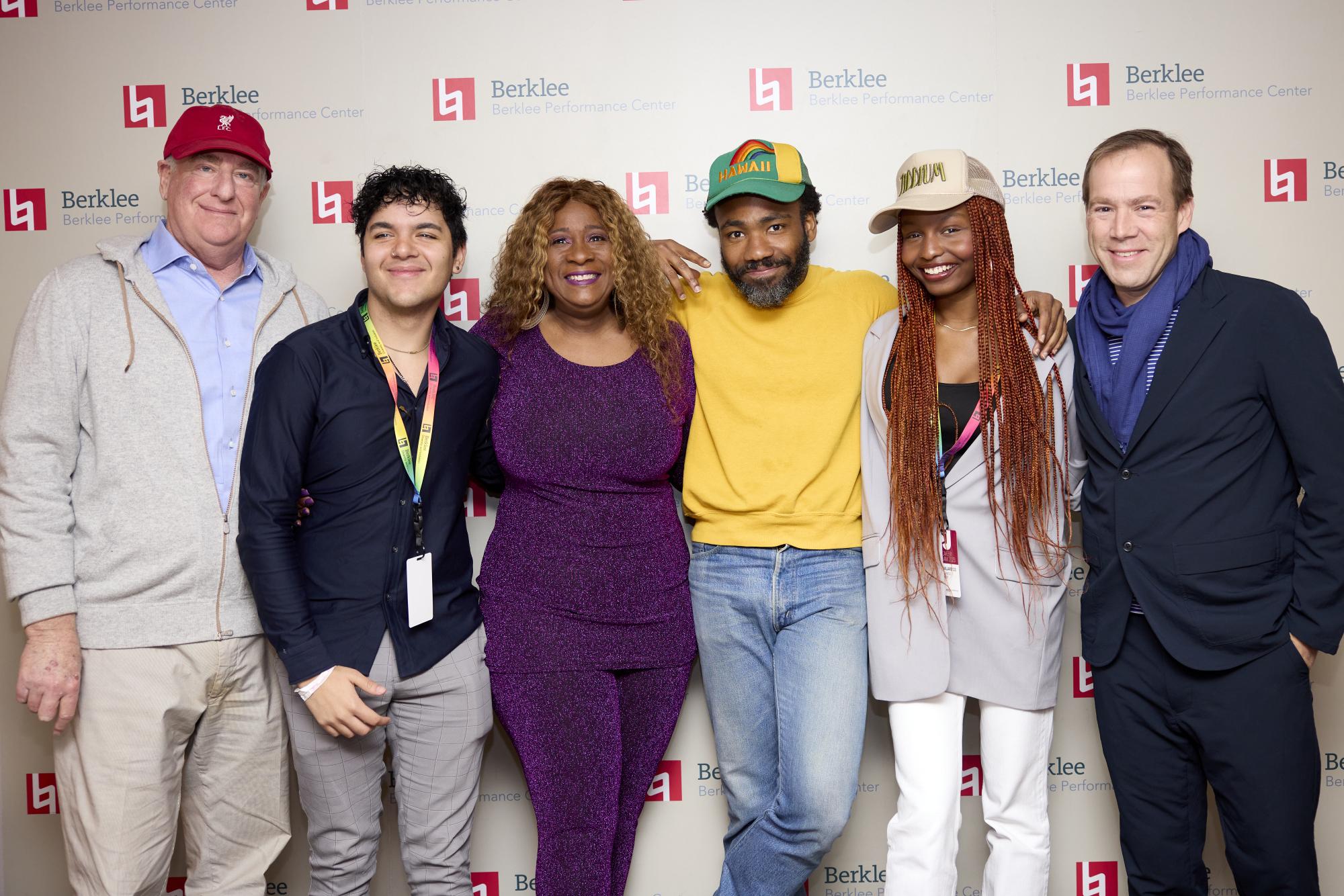 From left: Paul Wachter, Daniel Ramos (student), Tonya Butler, Donald Glover, Kaiya Ballard (student), and Luke Wood