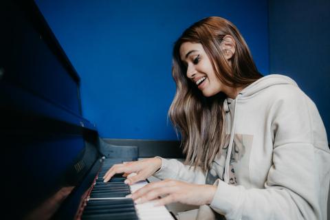 Shalmali Kholgade practicing in a Berklee studio.