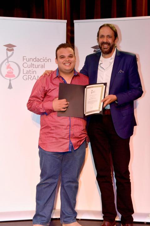 The Latin Grammy Cultural Foundation awarded the Juan Luis Guerra Scholarship to Jesús Molina-Acosta, a 19-year-old pianist from Colombia, during a special presentation at Berklee. Molina-Acosta was one of six finalists chosen by the Latin Grammy Foundation's Scholarship Committee, which evaluated a highly competitive pool of applicants. Molina-Acosta was chosen by Guerra to receive the scholarship with a maximum value of $200,000, which will allow him to further his music education at Berklee.
