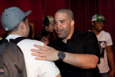 When asked how he deals with rejection, Parker said, "I'm from a single-parent family—I've dealt with rejection all my life." He counseled students to "just be tough. No one wants to let you in. You have to prove you deserve to be part of the crew. You say, 'I'm the man. I have got to do this,' and just make it happen."