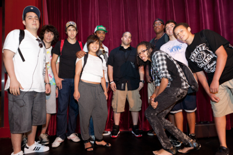 Berklee students pose with Dawaun Parker '05.