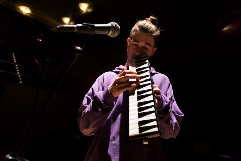 Berklee City Music student Javi Limón Jr. on the melodica during rehearsal