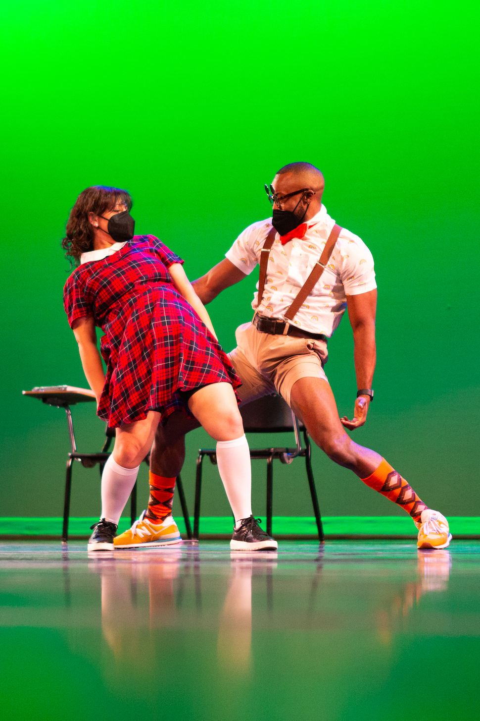 Roya Hu, senior director of faculty development, danced a “Back to School” medley with her partner and coach, Ruka Hatua-Saar White, assistant professor of dance. Dressed like a pair of nerdy middle-schoolers, they performed an energetic routine that received a nearly perfect score from the judges for “big, physical risk taking.”