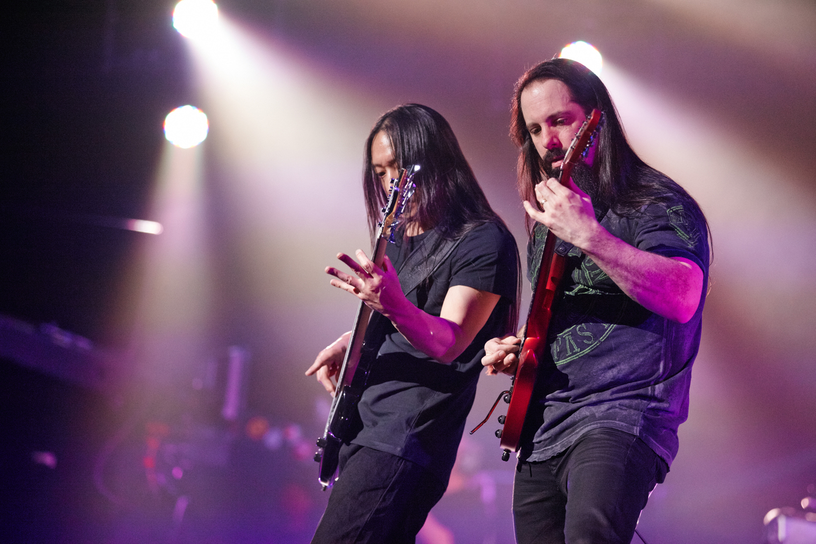 Petrucci (right) with Dream Theater bassist, and fellow Berklee alumnus, John Myung.