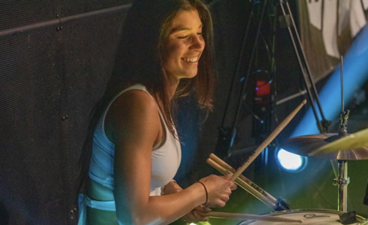 She got more serious about drums a few years later, leading to lots of gigs and six years at Lakehouse Music Academy in Asbury Park, New Jersey. Fast forward to the summer of 2019. Just having finished her junior year at Holmdel High School in New Jersey, Lamberti brought her passion to Berklee’s Aspire: Five-Week Music Summer Performance Intensive. She was so taken with the program that she auditioned for the following summer’s Rock Workshop at Aspire, and set her sights on Berklee for her undergraduate experience. “As soon as I arrived at Berklee, it felt like home,” she recalls.