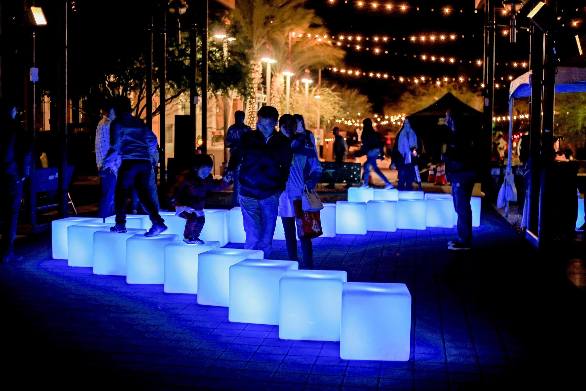 Not long after the sun set on February 3, visitors to the Bellforge Arts Center in Medfield, Massachusetts, braved a frosty wind and ventured outdoors to play with blocks.