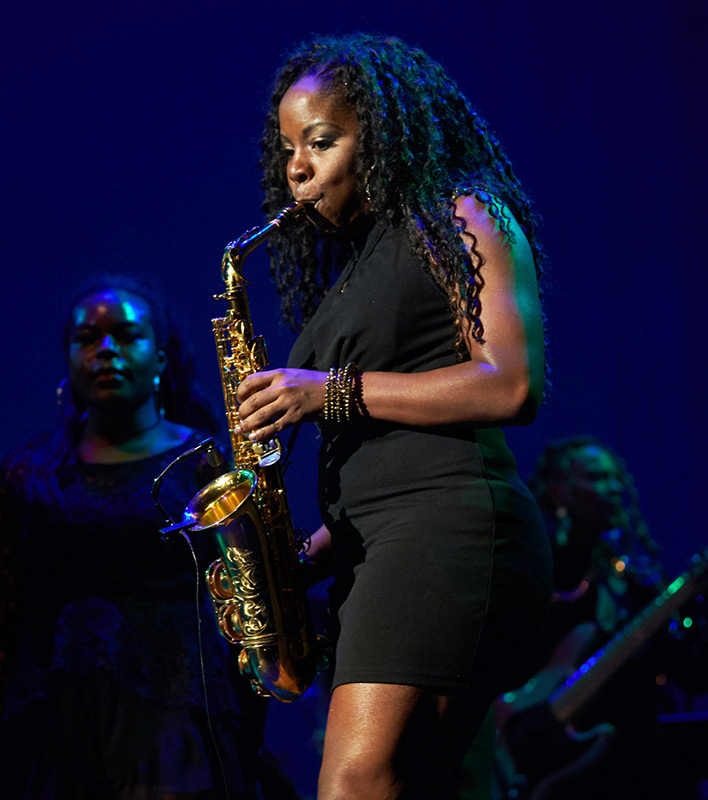 Fuller is an accomplished saxophonist, composer, bandleader, and educator. In addition to working extensively with Beyoncé, she served as assistant musical director for esperanza spalding’s Radio Music Society tour and performed with Terri Lyne Carrington’s Mosaic Project and Money Jungle tours. She has also played with artists such as Ralph Peterson, T. S. Monk, Rufus Reid, Aretha Franklin, Jill Scott, and more. Fuller has recorded five albums, including Diamond Cut, which received a Grammy nomination for Best Jazz Instrumental Album.