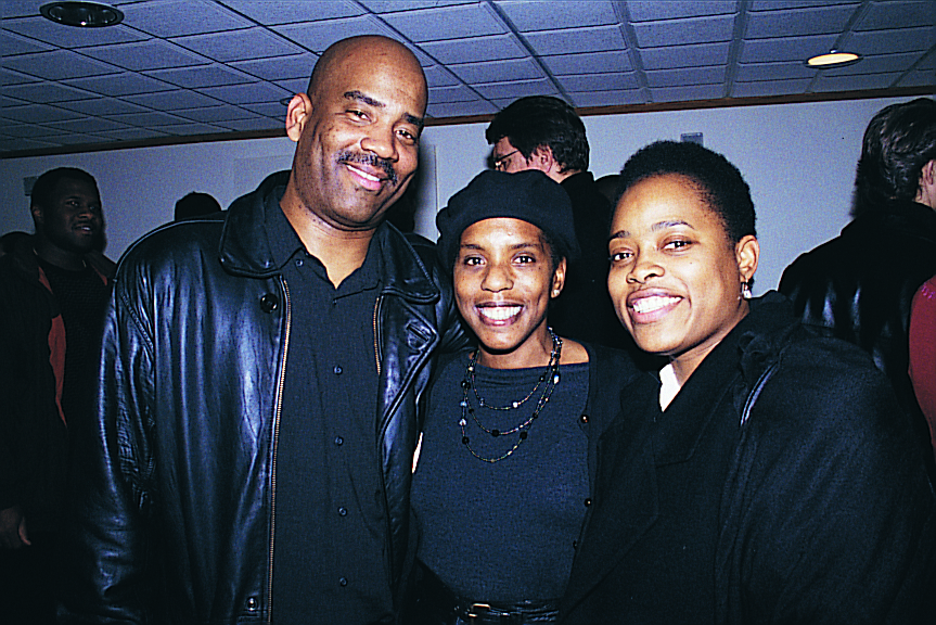 (From the left) Boston alumni Walter Beasley ’84, Deena Anderson ’81, and Lynette Gittens ’91 at the November 29 holiday social Photo by Toni Ballard