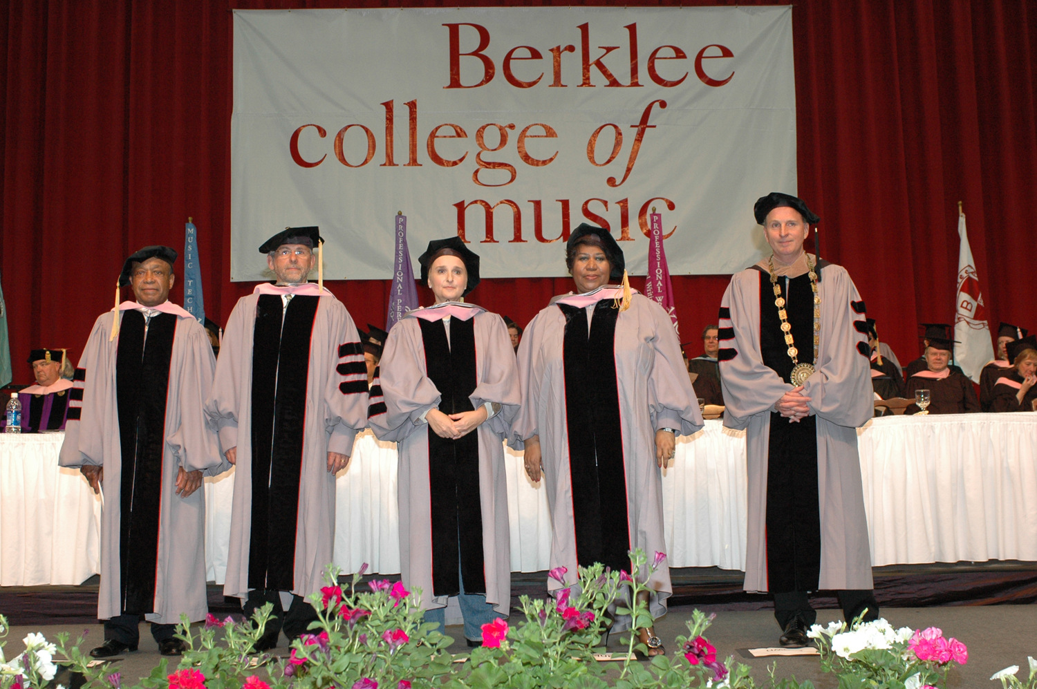 Commencement festivities covering the weekend of May 12 and 13, juxtaposed the excitement of new graduates contemplating the beginning of their careers with a look back at the careers of famed music biz heroes. On hand for the occasion to receive honorary doctorates were the Queen of Soul Aretha Franklin, rock singer Melissa Etheridge, studio engineer/producer Elliot Scheiner, and jazz saxophonist and Berklee Professor Emeritus Andy McGhee.