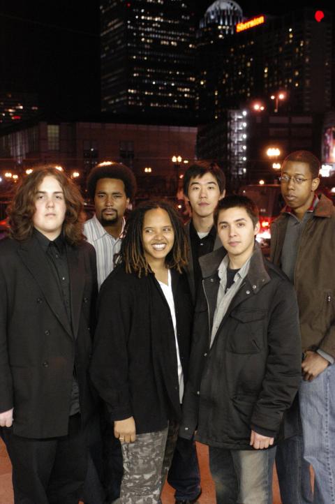 Faculty member Terri Lyne Carrington (center) is pictured with the student members of the Berklee Scholarship Ensemble that played at New York's Blue Note Jazz Club on April 17.