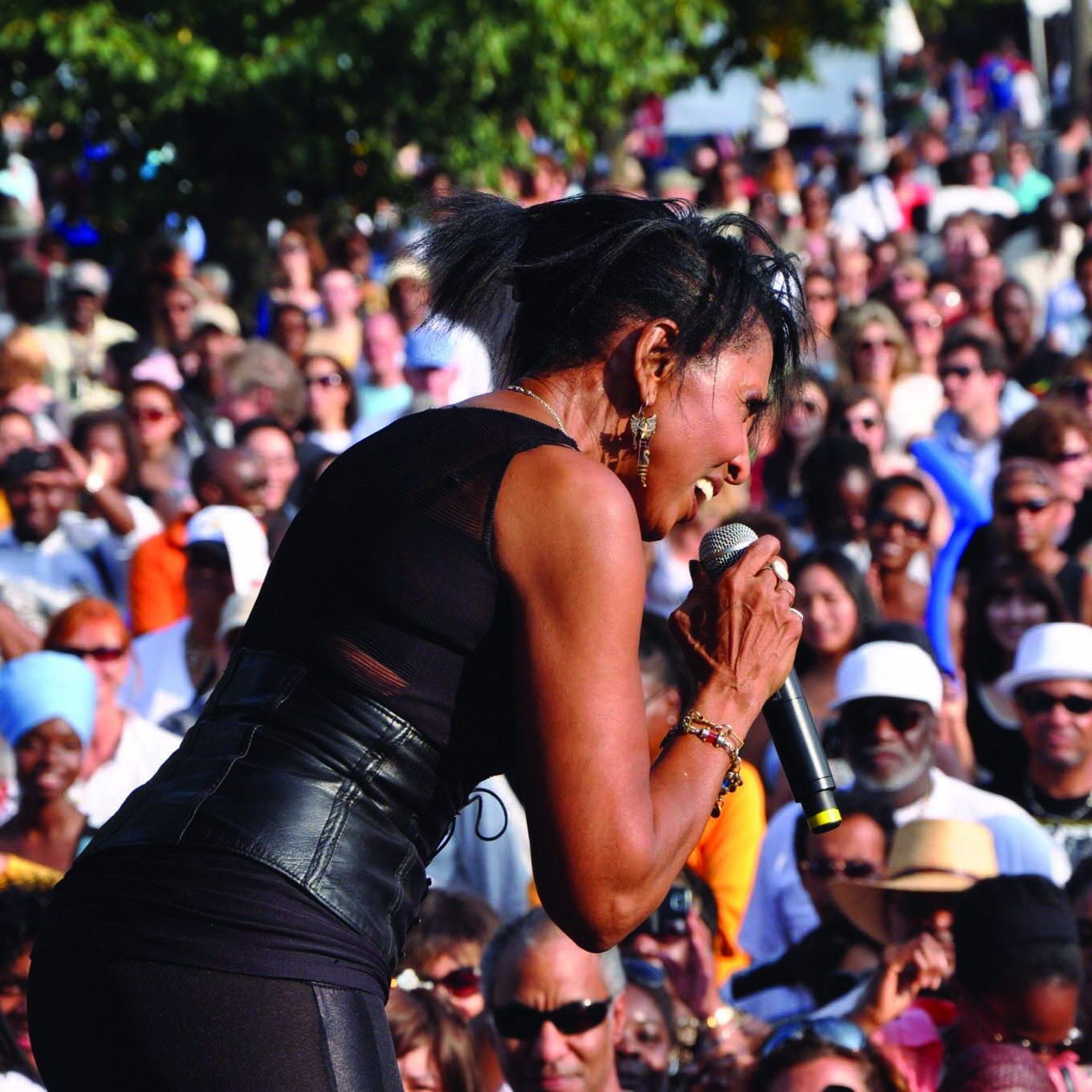 Singer Nona Hendryx works the large crowd on the Target stage on September 25.