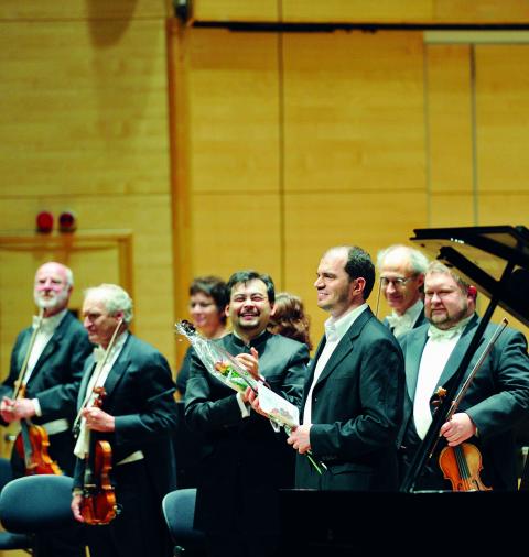 Gerstein is the orchestra’s featured soloist in Rachmaninoff’s Piano Concerto No. 1, which is quite a different role from the one he played in the previous night’s chamber music concert in Bonn. As Gerstein seats himself in front of a black Steinway, conductor Alan Buribayev introduces him to the orchestra. Gerstein glances quickly at his surroundings in the elegant Louis De Geer concert hall before turning to Buribayev for the downbeat. The piano enters with a torrent octaves in both hands. No sleep? No problem. As always, Gerstein’s playing is highly virtuosic and expressive.