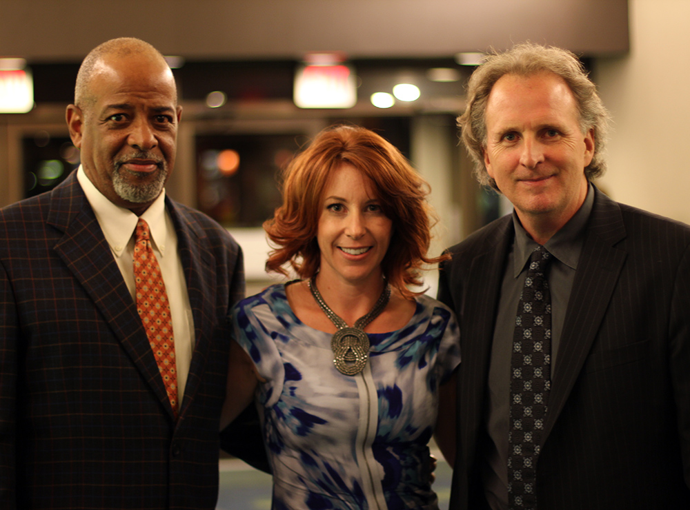 From the left: Senior Vice President for Academic Affairs/Provost Lawrence Simpson, alumna Robin McKelle, and President Roger H. Brown addressed entering students at the September 4 convocation.