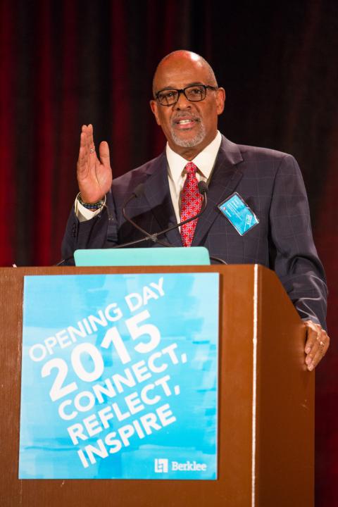 Before Harrison closed out the opening day festivities, Larry Simpson, the senior vice president for academic affairs and provost, and Brown spoke to the crowd. Simpson reflected on events in the past year and said that Berklee is still working to address issues surrounding race. “Even after 70 years and with a mission statement that says, ‘Founded on jazz and the musical traditions of the African-American diaspora,’ we still have challenges,” Simpson said. He called for staff and faculty to build new courses and programs “with thinking that is fresh, forward-looking, and unfettered with bias.”