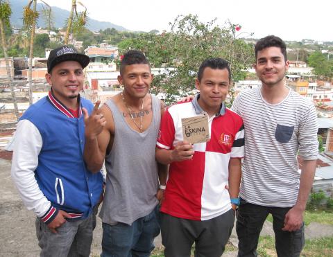 ACR has great interest in the healing power of music. During our visit, Edwin Moreno Lozano, an ACR case worker, brought us to the mean streets of South Ibagué. There, Lozano serves 250 re-entrants living in a place where deadly violence is routine. He introduces us to three altruistic and fearless young men who are part of “La Eskina del Barrio” (“The Corner of the Neighborhood”), a pioneering hip-hop initiative that offers positive alternatives for local adolescents who feel hopeless. La Eskina works out of a tiny basement recording studio in a small brick house fortified with steel bars covering every door and window.