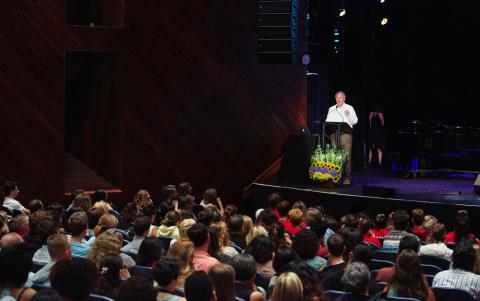 President Roger H. Brown addresses entering students at the September 2 convocation.