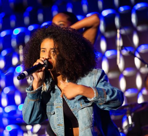 Vocalist Yanina Johnson and a seven-piece student group from Berklee College of Music performed three songs at the September 7 Opening Day exercises.