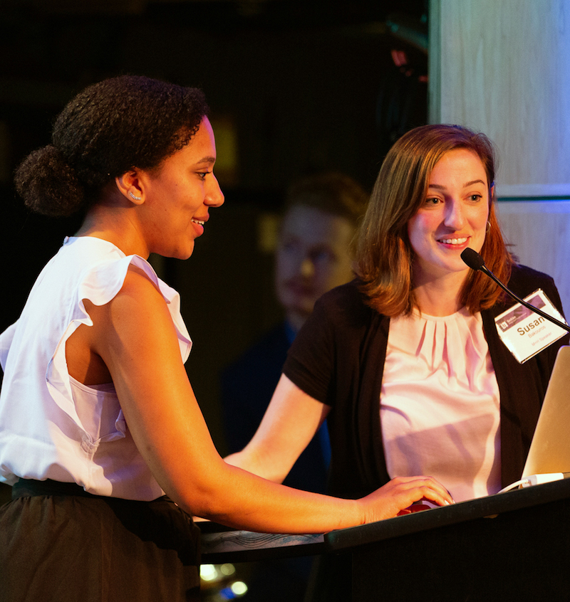 Jasmine Edwards (left) and Susan Bakouros discussed the impact of music therapy on infants with neonatal abstinence syndrome.