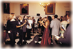 Over 1,200 guests filled the Harvard Club on Commonwealth Avenue in Boston's Back Bay on October 23 to hear performances by more than 100 of Berklee's finest student and faculty musicians. From 7:00 p.m. until midnight, the Harvard Club was transformed into an entertainment complex with eight nightclubs featuring jazz, blues, classical, folk, big band, world music, and r&b for dancing and listening audiences.