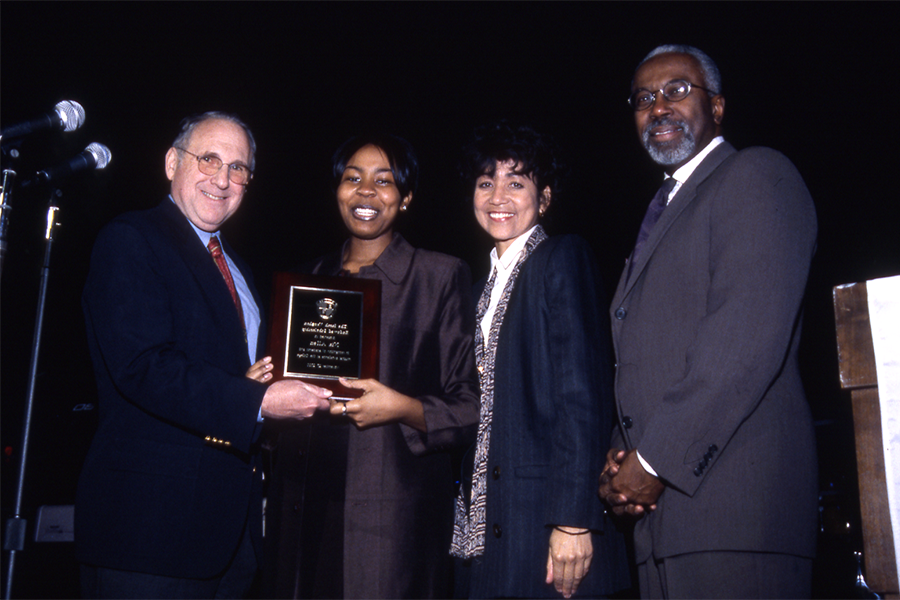 From the left: Trustees David Lee and Vivian Beard, Sarah Vaughan award recipient Nia Allen, and President Lee Eliot Berk.