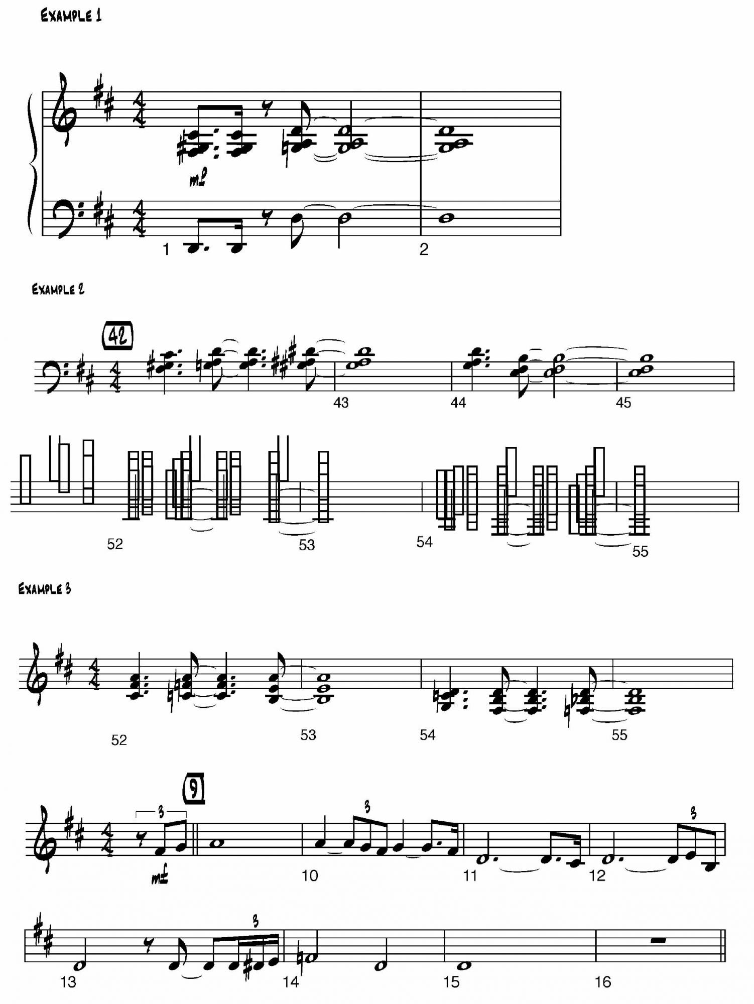 To apply the specific ideas presented here, I recommend that you first listen to the piece, then play through the examples shown here. A recording can be found at www.berklee.edu/ bt/173/lesson.html. The complete score can also be downloaded there. If you find any of these sounds interesting, explore them to see how they might be used in your own writing.