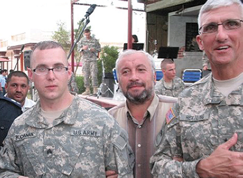 “Ken Pullig, who served in Vietnam, had told me, ‘Keep your head down, your ears open, and your mouth shut, and you’ll get through.’ And that’s what I did.” Though Buchanan wasn’t in a combat unit, there were scary moments. During a June 2008 concert tour of Iraqi provinces, a bomb exploded behind Buchanan’s vehicle in Tikrit. “Luckily, no one got seriously hurt,” he recalls. “Major General Hertling told us after the concert that we were taking sniper fire throughout the show. It was a reminder that we were in a combat zone. The other stops on the tour were pretty quiet.”