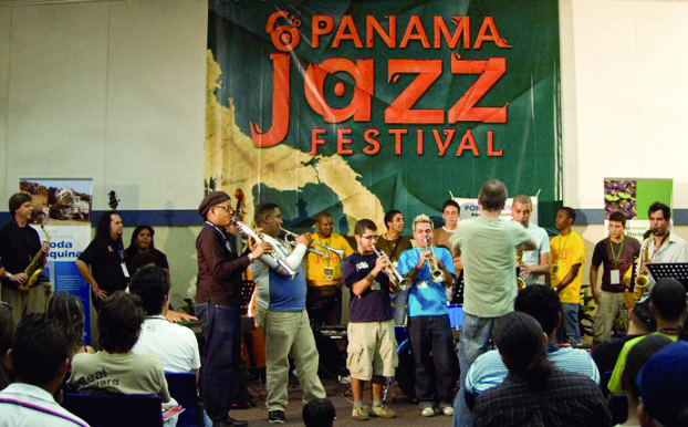 More than 600 students from countries throughout Central and South America attended a week of clinics presented by faculty members Jim Kelly, Jim Odgren, Neil Leonard, Alex Rodriguez, and Rob Jaczko during the Panama Jazz Festival. President Roger Brown addressed festival supporters at a Danilo Pérez Foundation gala event, Senior Vice President for Institutional Advancement Debbie Bieri held an alumni reception, and Director of Admissions Damien Bracken awarded scholarships to four young musicians based on the auditions and interviews conducted during the festival. For further details and a video documentary, visit www.panamajazzfestival.com.