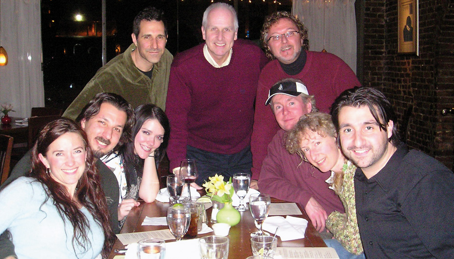 Nashville nexus: from the left: Kira Small ’93, Bryan Beller ’92, Annie Clements ’03, Greg Becker ’95, Mark Small ’73, Joe Smyth ’79, Joe Doyle ’87, Lisa (Bradley) Doyle ’88, and Dave Petrelli ’05.