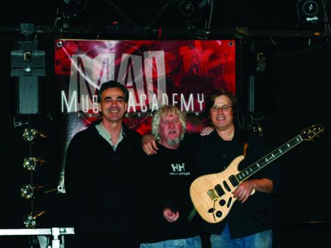 From the left: Professor Casey Scheuerell, Hans Kullock (director of the Music Academy International in Nancy, France), and Professor Jon Finn. Scheuerell and Finn presented clinics and master classes at the academy during a February visit.