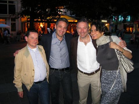 Forty alumni from Paris, France gathered for a July 2 reception hosted by Berklee today editor Mark Small at Duc des Lombards jazz club where Lalah Hathaway was performing. From the left: Thierry de Micheaux ’95, Chester Lukas Harlan ’96, Denis Jusseaume ’97, and Patricia Setbon.