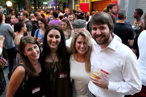Interns, alumni, and industry folks got together at Berklee at Bareburger, hosted by the offices of Experiential Learning and Alumni Affairs in New York's West Village. From the left: Lisa Sinapi '09, Kory Glattman '10, Tansu Akman-Duffy '10, Andrew Devine '09.