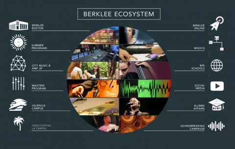 Brown compared Berklee to ecosystems found in nature, defining such ecosystems as dynamic communities of living organisms—plants, animals, and microbes—that interact with nonliving components to function as a whole. The Berklee ecosystem includes: Berklee Boston, summer programs, City Music and AMP Up NYC, master’s degree programs, the Valencia campus, Berklee Online, MOOCs, the Berklee International Network, social media, alumni affairs, and Soundbreaking: The Campaign for Berklee.