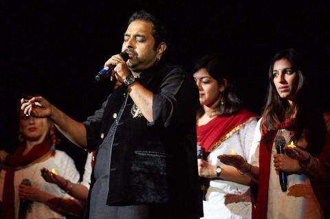 Indian composer and vocalist Shankar Mehadevan performs with Berklee students.