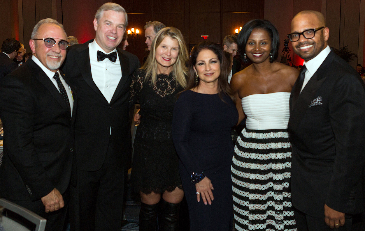 From the left: Copresenting sponsors John Connaughton and David Gross-Loh, Berklee President Roger H. Brown, Gloria Estefan, and copresenting sponsors Amy and David Abrams.