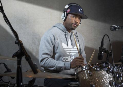 His kaleidoscopic musical career has taken him from humble beginnings drumming with the band at New Friendship Baptist Church on the South Side of Chicago to gigs at the Super Bowl, the World Cup, and stadium concerts across the globe with the Black Eyed Peas. In addition to extensive touring (Harris’s travels have filled three passports so far), he’s also much sought-after as a music director and in various roles in the studio. He was a cowriter or producer on four tracks from the Peas’ 2010 Grammy-winning album The E.N.D. (Energy Never Dies). He’s also written or produced tracks for stars including Madonna, Robin Thicke, Usher, Mary J. Blige, Busta Rhymes, and many more. His cowriting on Estelle’s song “American Boy,” netted him a Grammy in 2009, and his production of the Revival album by Canadian R&B artist Jully Black paved the way for the record to win the Best R&B Album category at the 2008 Juno awards.