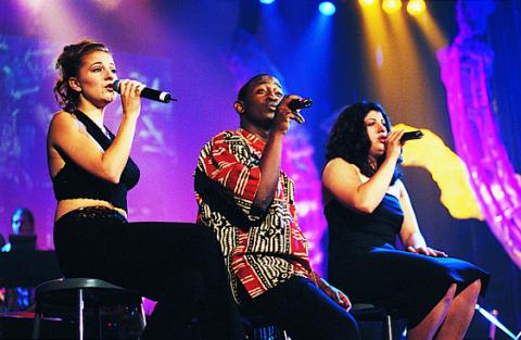 From the left: Vocalists Chrissi Poland, Eric Wainaina, and Andrea Capozzoli, sing Steely Dan's "Aja"