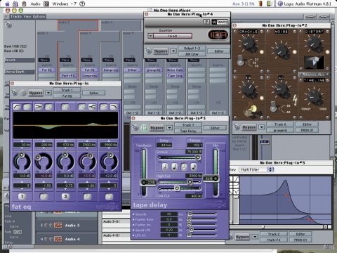 Figure 1 Audio plug-ins used for a Logic Audio project. Some of the plug-ins shown are made by Logic, others are third-party products.