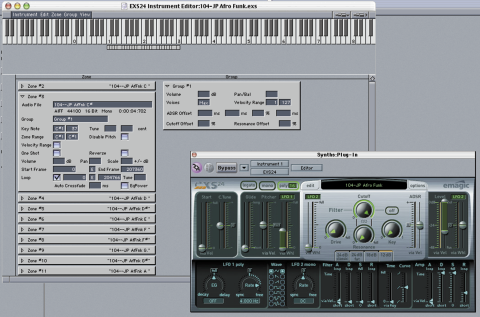 Figure 3 The Emagic EXS24 soft sampler, showing the main page and the edit page. The latter illustrates individual samples mapped across the key range.