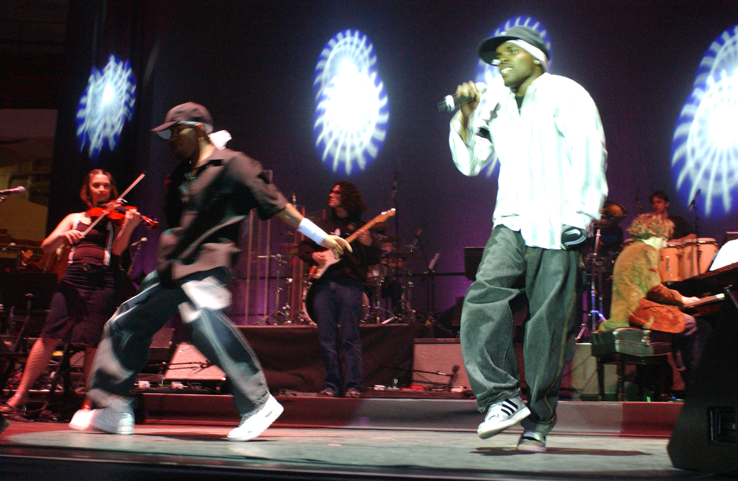 Members of the Berklee Hip-Hop Ensemble commanded the stage at the commencement concert.