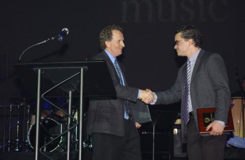 President Brown congratulated Billboard scholarship recipient Bryan Baker before the show.