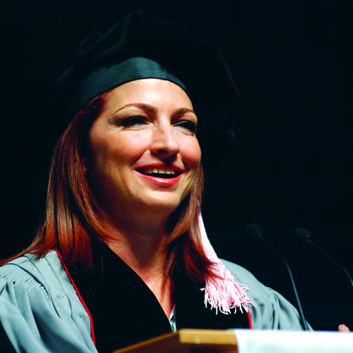 Estefan spoke about her family and her early years and offered encouraging words to the graduates now preparing to enter the music business. “I came from a long line of musicians,” Estefan told the assembled audience. “Music was always my escape, my way of laughing, crying—a healing force in my life. It’s an awesome privilege to make music. Being a musician is a beautiful way to live your life. Go forward with a lot of belief. We are all capable of doing what we truly believe in.”