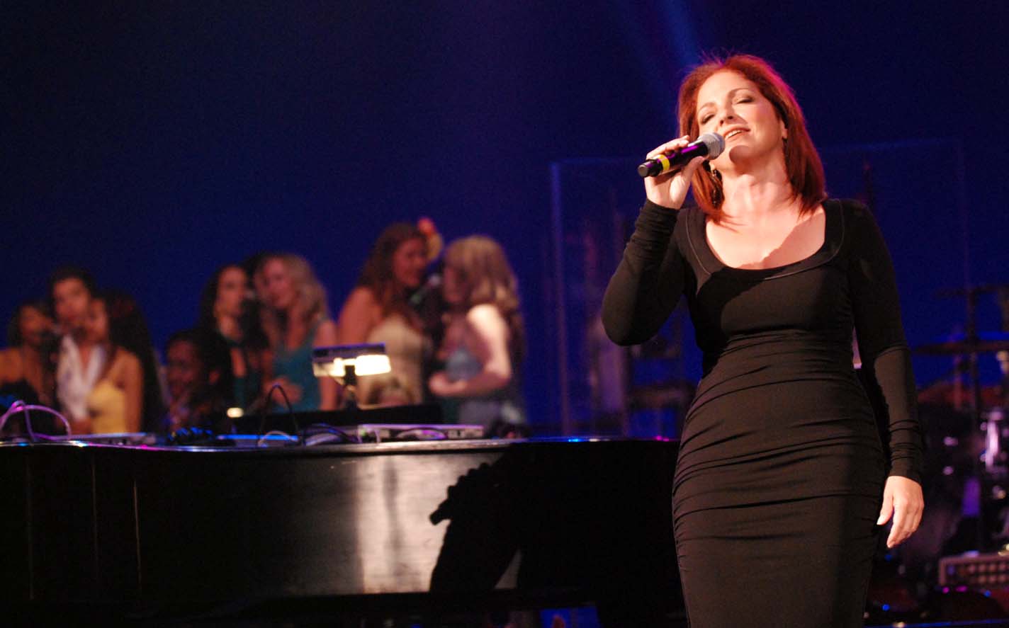 Gloria Estefan singing her hit ”Out of the Dark” with the student ensemble.