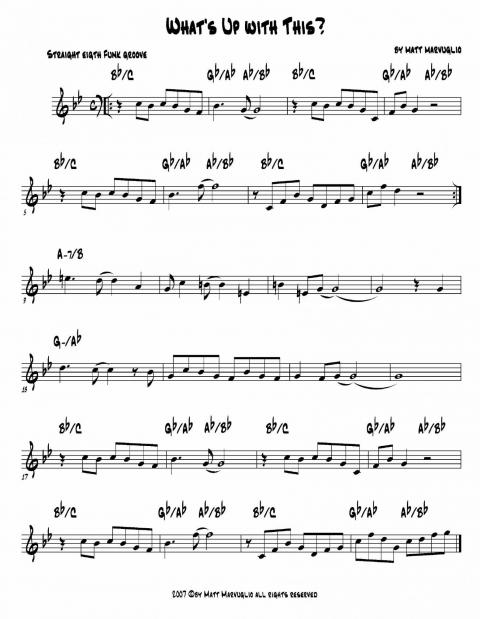 Now that we have gone through the three-memory-system process with a simple melody, apply the principles to the unfamiliar and more complex melody in example 3B. See example 3A for my analysis of the the scales used in melody of the tune “What’s Up With This?”