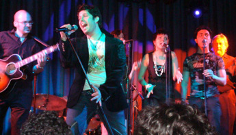 Vocalist Daniel Diaz ’07 performs onstage with a Berklee student band at the Jazziz Bistro during the Latin Showcase in Hollywood, Florida, in April.