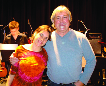 Songwriter Jen Chapin ’95 and Associate Professor Mirek Kocandrle at the sound check for Pop/Rock Live! Chapin was the special alumni guest artist for the show, which Kocandrle directs every March.