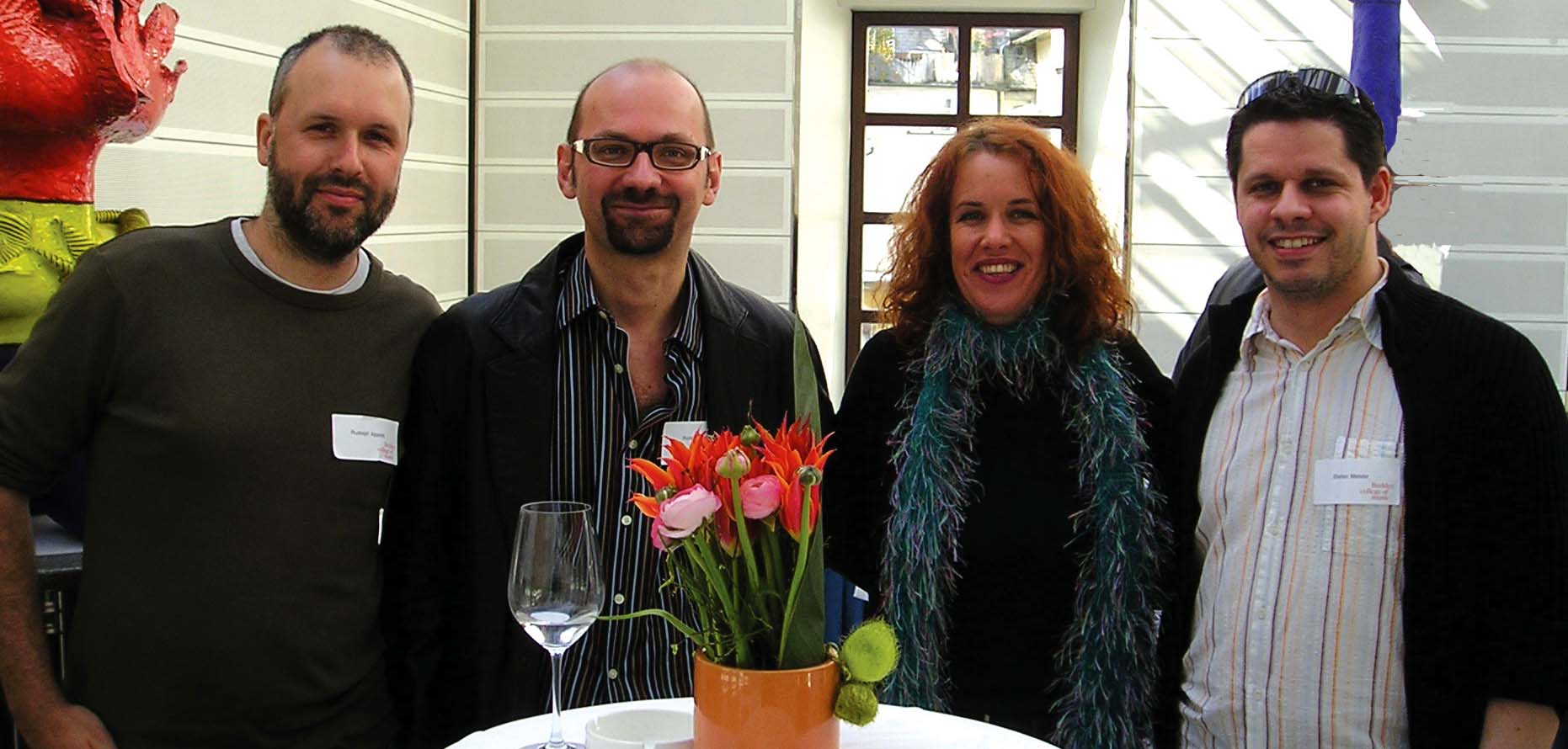 From the left: Rudy Appoldt ’96, Roman Wutzl ’95, Barbara Wehrli ’93, and Stefan Meister ’83 were among the attendees at an April 13 alumni reception in Zurich, Switzerland.